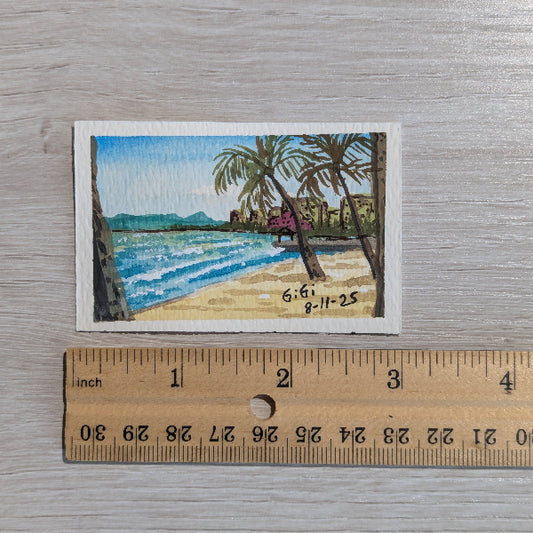 Mini watercolor painting 2"x 3" ( Waikiki beach ) 8-11-25