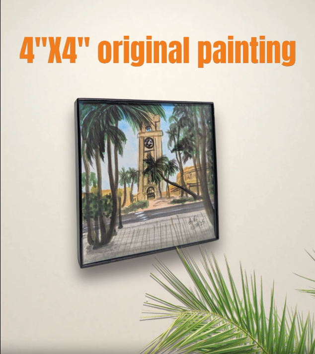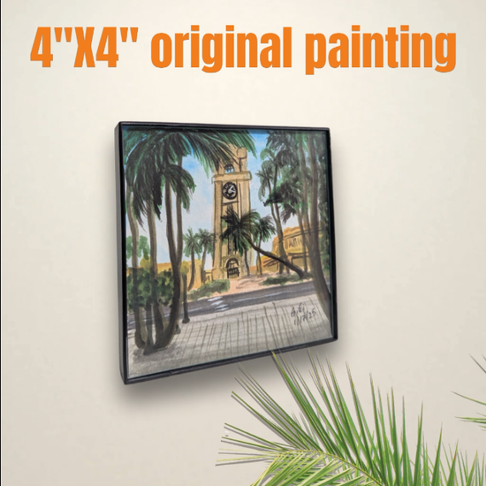 Original 4" x 4" Aloha Tower acrylic painting, hand-painted on a watercolor paper . Bring color and life to your walls with this one-of-a-kind piece of art.