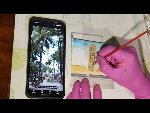 Aloha Tower 4" x 4" original hand painting ( free shipping )