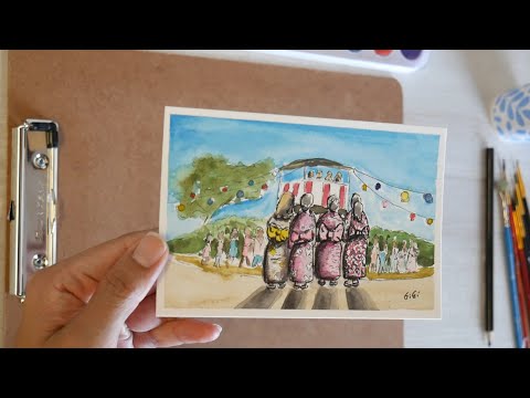 Mini watercolor painting 2"x 3" ( Kapiolani park banyan tree ) 8-18-2025